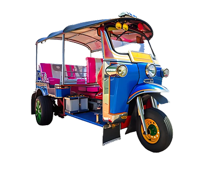 We offer a variety of vehicles including motorcycles, tuk-tuks, vans, and minibuses to suit different travel needs and group sizes.